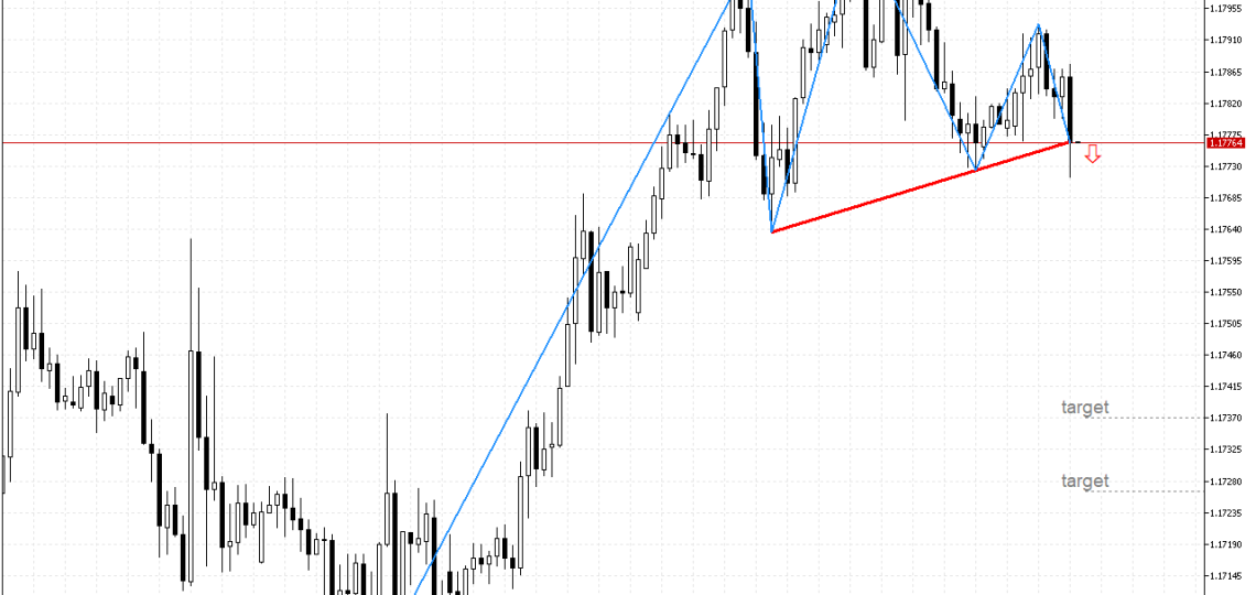 The EURUSD pattern revealed on the chart indicates weakness in upward momentum.