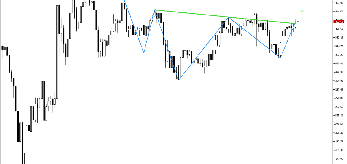 A classic Head and Shoulders pattern emerged on the chart. The neckline in green has been apparently pierced, confirming the completion of this reversal pattern. This is an important signal indicating a potential price increase. It is important to be vigilant for possible retesting of the Neckline, which often occurs as this pattern develops.